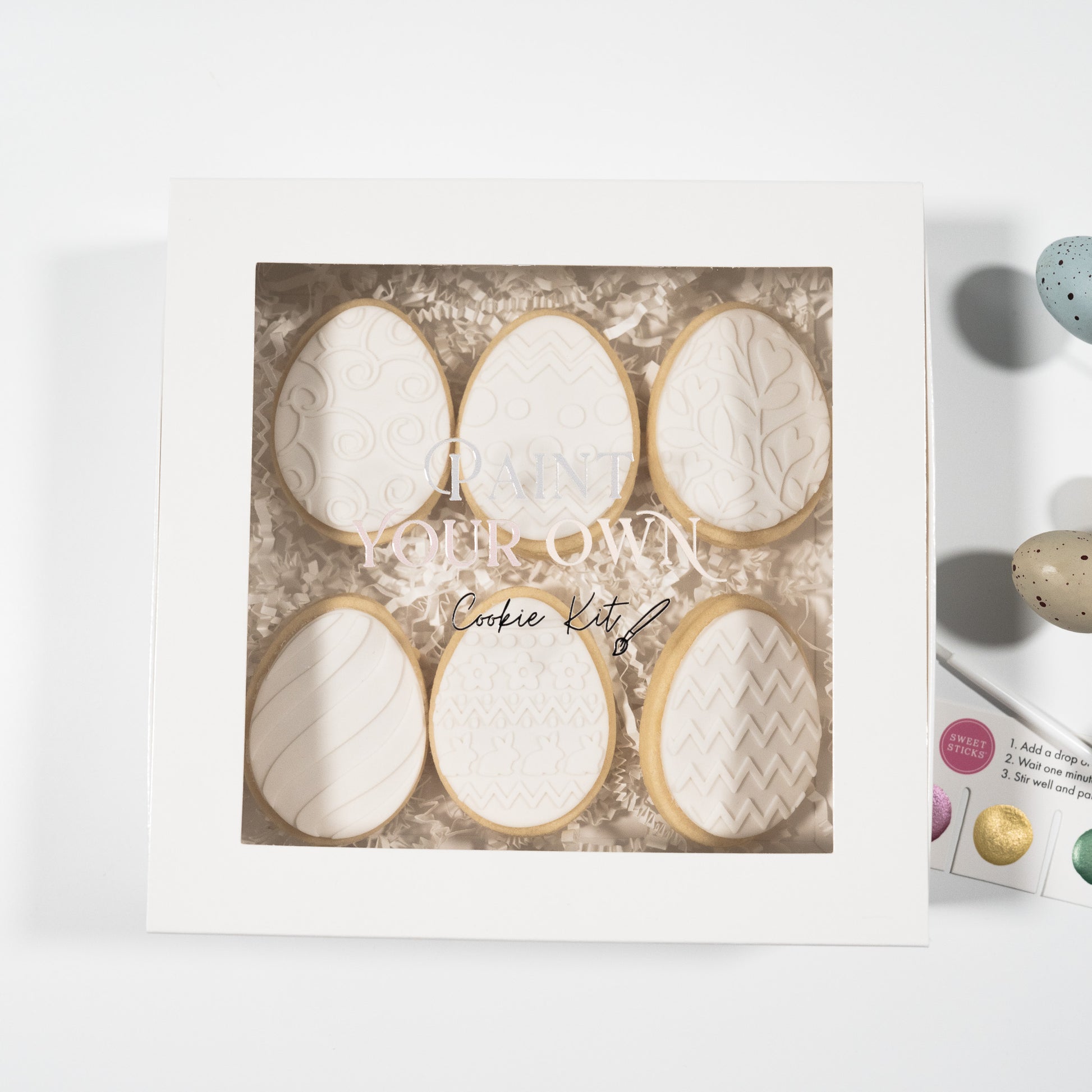 Get creative this Easter with our Paint Your Own Cookie Kit! This fun set includes six Easter egg-shaped cookies, ready to be brought to life with edible paint (included). Simply dip the included brush in water, and start decorating! A perfect activity for kids and a delicious treat all in one. Limited stock—grab yours before they’re gone!